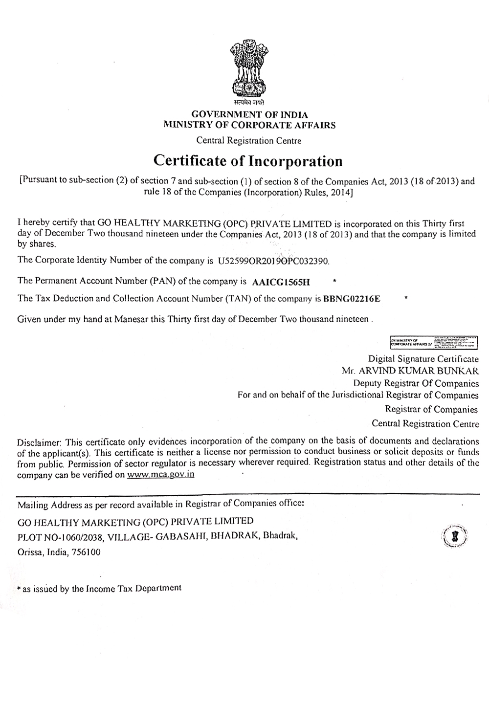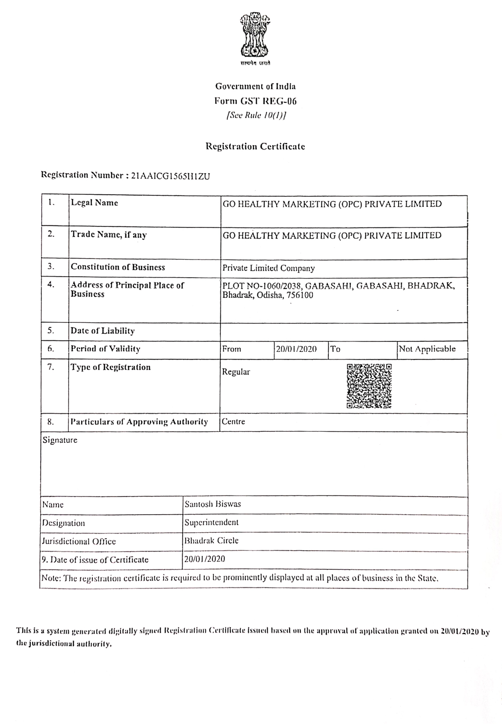 Go healthy Marketing ,Bhadrak ,Odisha,756100
